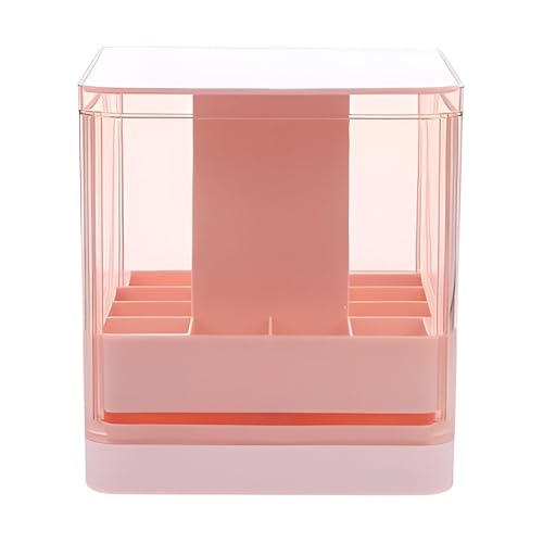 - This transparent pink plastic makeup organizer features a unique press-lift design that revolutionizes traditional access methods, offering a satisfying and intuitive way to retrieve lipsticks, lip balms, and liquid lipsticks—eliminating messy searches and enhancing daily beauty routines with elegance and ease.