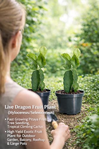 Generic - Live Dragon Fruit Plant (Hylocereus/Selenicereus) – Fast Growing Pitaya Fruit Tree Seedling, Tropical Climbing Cactus, High Yield Exotic Fruit Plant for Outdoor Garden, Balcony, Rooftop & Large Pots