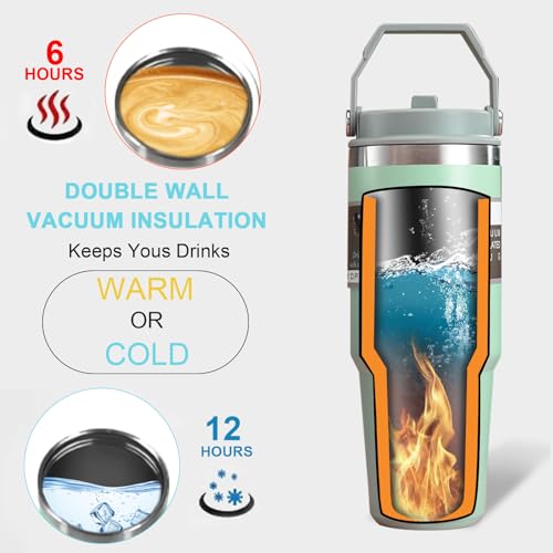 - Perfect capacity: our insulated cup has a capacity of 900 ml, the perfect amount to meet your drinking needs. The wide neck design makes it easier and faster to fill water or ice cubes, and you can drink directly and the water flows faster. Take it with you when you are driving, exercising, cycling, work, school or travel, and you can always fill up when you're thirsty!