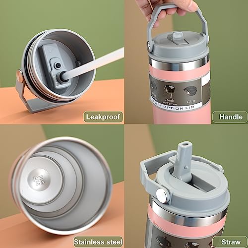 - Easy to use: The stainless steel water bottle is equipped with a handle that makes it easy to take and carry. The "One Click" lid is designed to be easy to open and close with one hand at the push of a button. The insulated cup is equipped with a straw that effectively prevents the leakage of liquids when drinking. If you don't want to drink with the straw, you can unscrew the lid and drink! Fits most car cup holders.