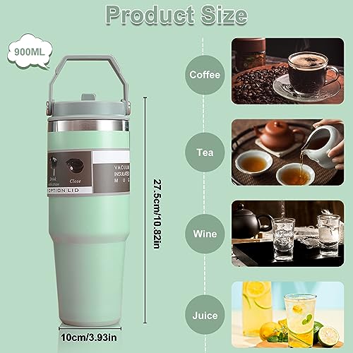 Lnvocn - 900 ml Thermal Bottle, Stainless Steel Thermos Flask BPA-Free Thermos with Cold Straw for Sports, Work and Gym (Green)