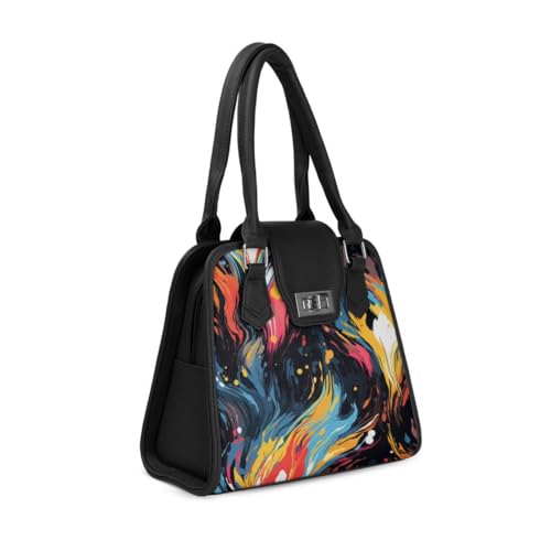 Generic - Metropolitan Charm Ladies Handbag, Abstract Multicolour Design, Black Handles, Fashion Tote