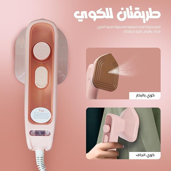 Generic - Micro Portable Steam Iron – Mini Handheld Ironing Machine for Clothes | 2-in-1 Dry & Wet Garment Steamer | Compact Travel Iron for Home & Travel Use (pink)