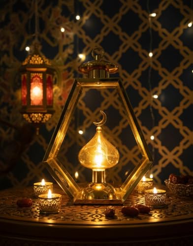 - Elegant Modern Design: A shiny gold geometric frame lantern in a hexagonal pyramid adds a luxurious touch to your home decor during the month of Ramadan and special occasions