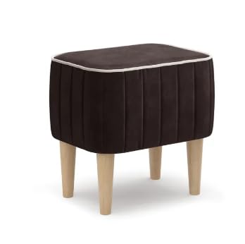 Generic - Modern Ribbed Velvet Rectangular Ottoman with White Piping Detail, Contemporary Vanity Stool, Natural Wood Legs, Brown