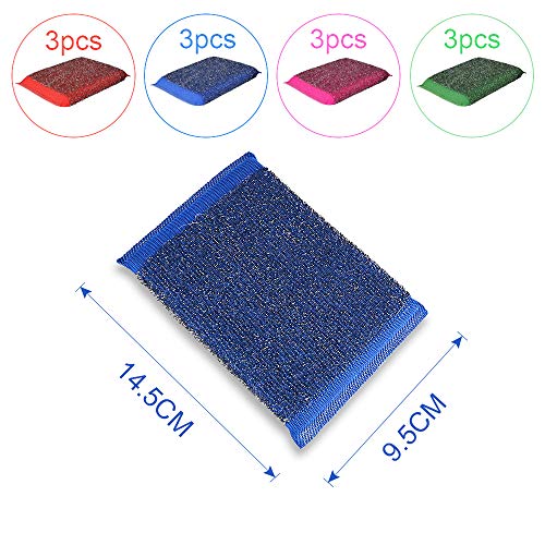 NiceGo - Dish Wash Sponge, Multi-Use Heavy Duty Scrub for Dishwashing, Kitchen Sponge for Hard Surface Tools (Pack of 12) (Red+Pink+Blue+Green)