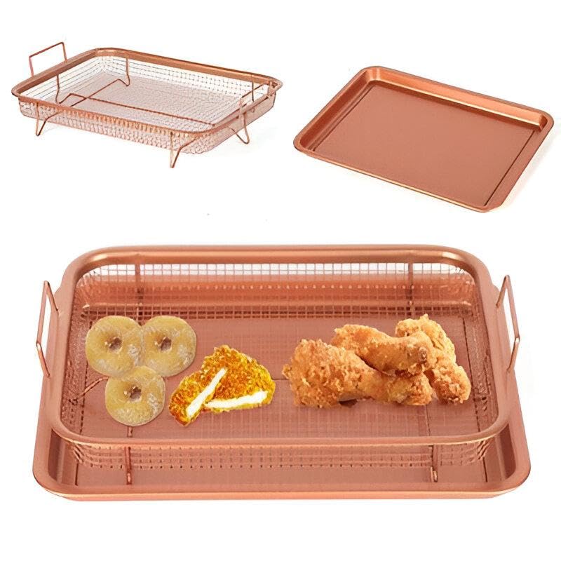 Generic - Oven Roaster Pan - Detachable Stainless Steel, Non-Stick Wire Baking Rack, Oil Sifter, Frying Mesh Basket and Grill Basket; Made of Copper Coated Stainless Steel; Versatile
