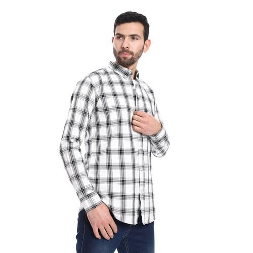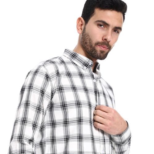 PAVONE men wear - Men Turn Down Collar Plaid Pattern Shirt