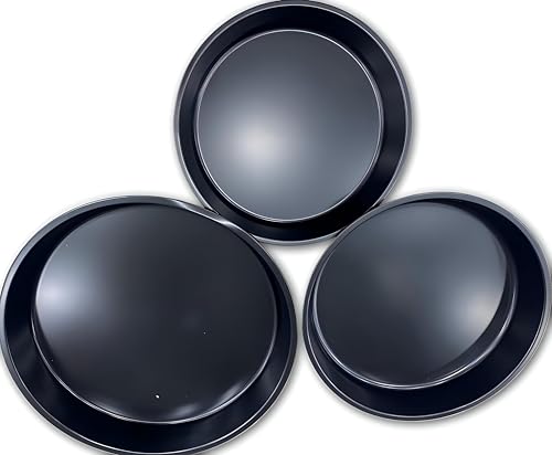 - مجموعة من ثلاث صواني بيتزا معدنية بأحجام مختلفة، مما يوفر تنوعًا ليناسب أقطار البيتزا المختلفة واستيعاب الأطباق المخبوزة الأخرى.