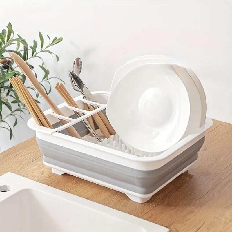 - COLLAPSIBLE DESIGN: Space-saving dish rack that expands for use and collapses flat for storage, perfect for small kitchens and limited counter space