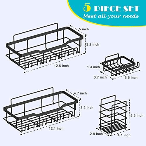 - 【Shower Organizer Set】Our 5-pack bathroom shower shelves set include 2 shower caddies、2 soap holders、1 toothbrush holder and 5 adhesives. The large capacity shower rack can hold all your shower stuff, coming with 16 hooks for brushes, bath sponge, razors. This organizer can be used in bathrooms, restrooms, kitchens, tool rooms and more to take your space from cluttered to tidy.