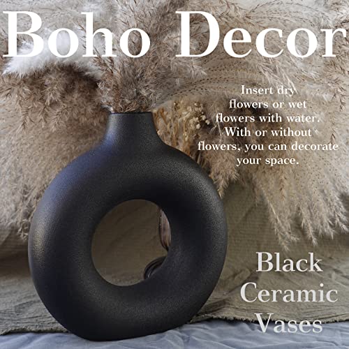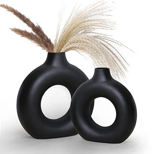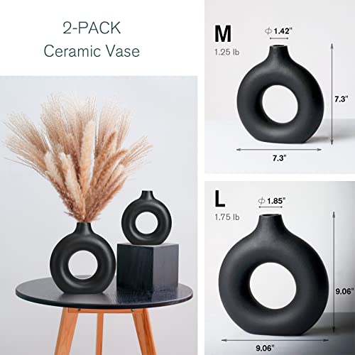 REDHILL - طقم فازات مصنوع من السيراميك بلون مطفي لديكور المنزل الحديث مع زهور البامباس بتصميم دافئ بسيط لحفلات الزفاف وطاولة العشاء والحفلات وغرفة المعيشة والمكتب وغرفة النوم فازة ديكورية من REDHILL، 2 قطعة