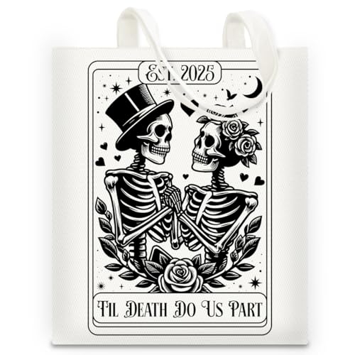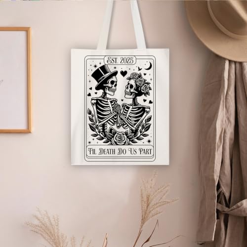 RNYJJ - شنطة يد كبيرة توت من القماش بتصميم قوطي لعيد الحب للنساء والصديقة والزوجة والرومانسية والهيكل العظمي والازواج لعيد الحب والذكرى السنوية، ملونة، مقاس M من ار ان واي جيه جيه