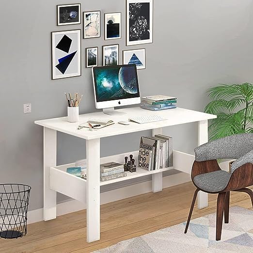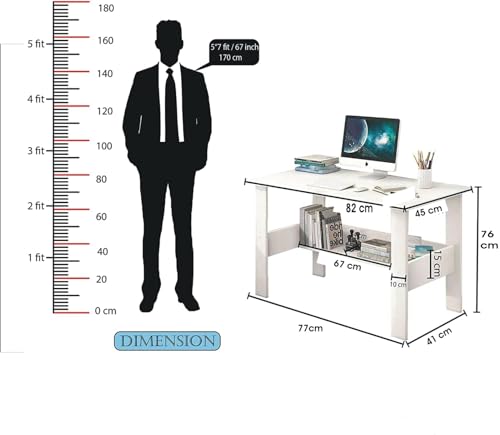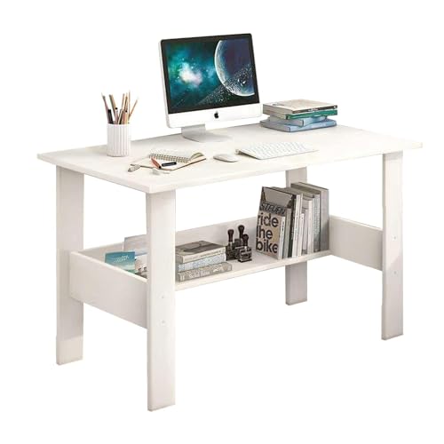 SBF Furniture - SBF Furniture Wood Computer Desk with One Tier Shelves Laptop Study Table for Office Home Workstation Writing Modern Desk (82 x 45 x 76 cm) (White)
