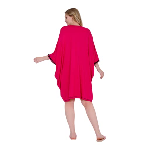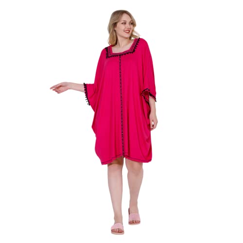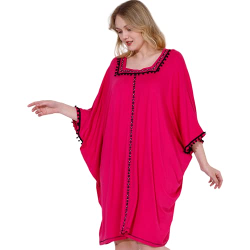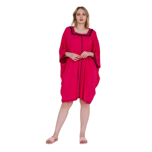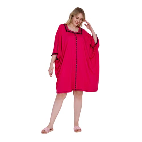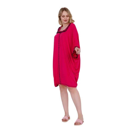ZECOTEX - عباية صيفي طويلة من قطن فسكوز وليكرا، عباية بأكمام طويلة واسعة بتطريز على الصدر وزينة ورقبة دائرية للنساء، ثوب نوم بقصة خاصة لتمنحك الشعور بالراحة في المنزل، لون زهري