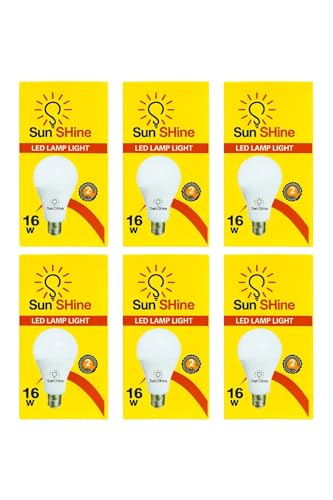 Generic - Sun SHine LED Light Bulbs, Pack of 6, 16W, 2 Years Warranty, White Light for Home and Office Use