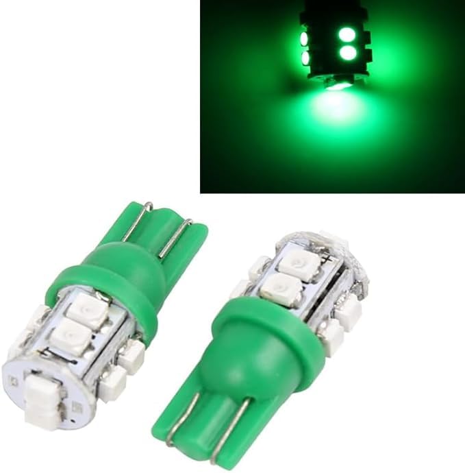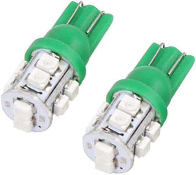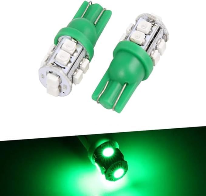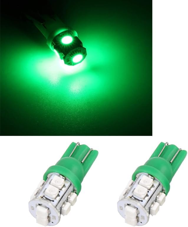 Generic - مصابيح LED T10 قاعدة اسفينية لمصباح وقوف السيارة/ مؤشر جانبي/ مصابيح لوحة ارقام (اضاءة اخضر ، 10 ليد ، 2 قطعة ) - SA CAR
