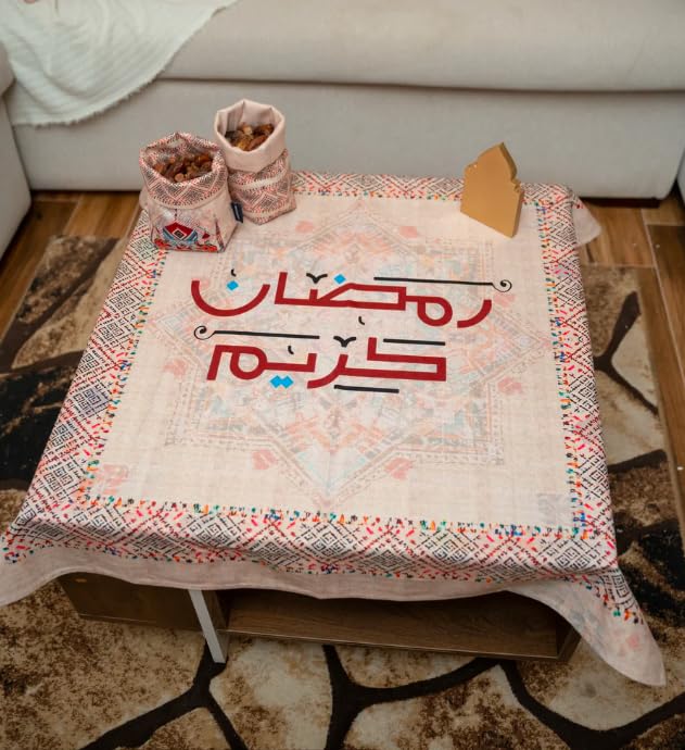 Generic - مفرش طاولة، قماش مخملي ناعم، متوفر بمقاسات متعددة، تصميم الخط العربي مع حواف زخرفية، غطاء طاولة طعام لـ 6-8 اشخاص (140 × 140)