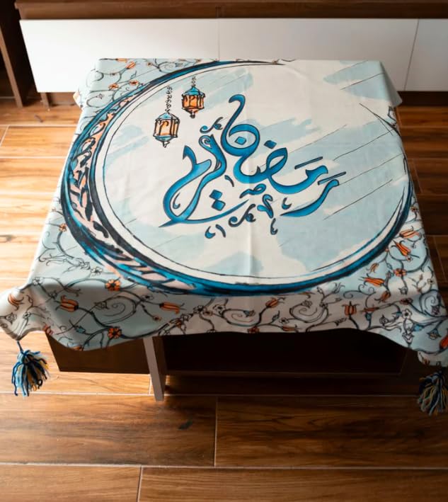 - Elegant Design: Features beautiful Arabic calligraphy with decorative lantern motifs in blue and white colour scheme, perfect for adding a festive and cultural touch to your dining space