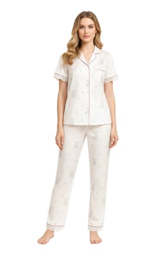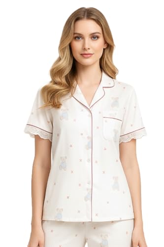 TE BIANCO - Cute Cartoon Pajamas | Silky Soft Satin Material | Button Front Design | 3 Piece (Top, Shorts, Pants) | R154