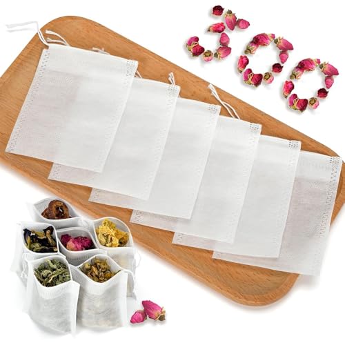 OWATRKDEY - اكياس شاي لاوراق الشاي السائبة 300 قطعة، مصفاة برباط للاستعمال مرة واحدة، اكياس فلتر قابلة للتعبئة للشاي والقهوة والاعشاب والتوابل، مصنوعة من مادة شبكية دقيقة غير منسوجة (3.54×2.75 انش)