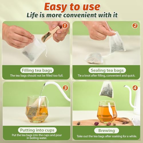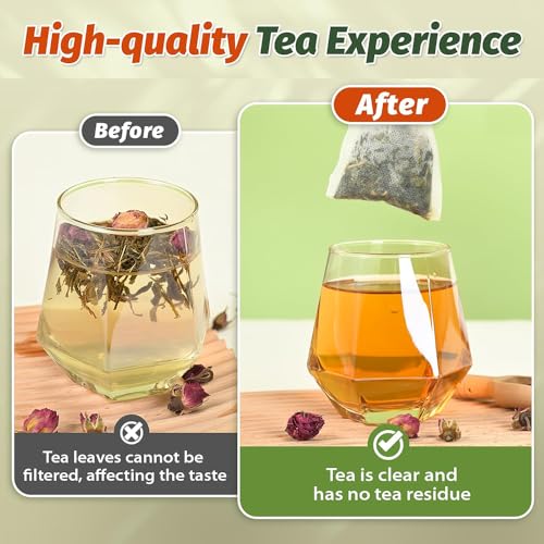 - مادة طبيعية غير منسوجة - مصنوعة من ألياف آمنة غذائيًا مع رباط قطني، مما يساعدك على الاستمتاع بنقع نظيف عند تحضير الشاي أو الخلطات العشبية.