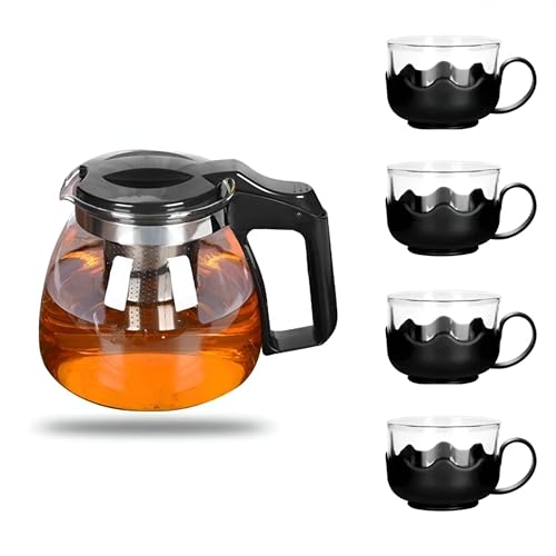 Generic - Teapot - Enjoy the elegance of a clear glass teapot with a matching set of 4 heat-resistant cups, perfect for enjoying your favorite tea blend in style