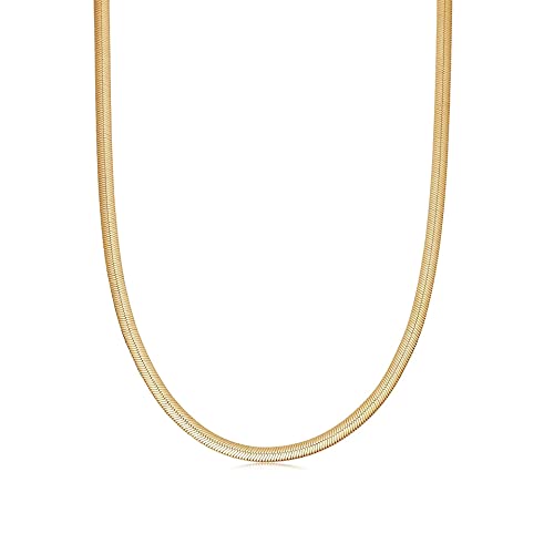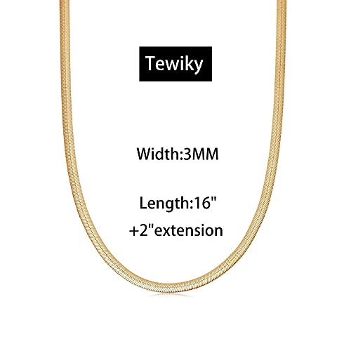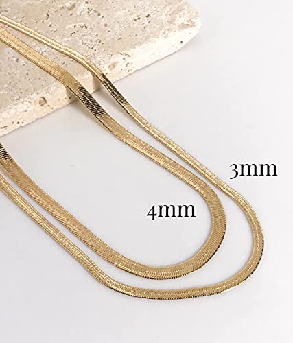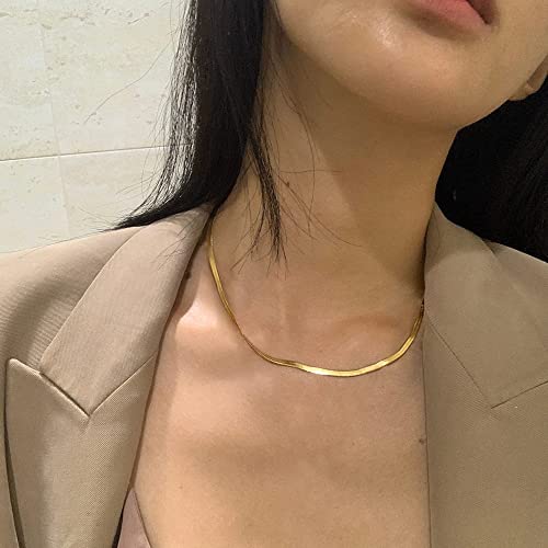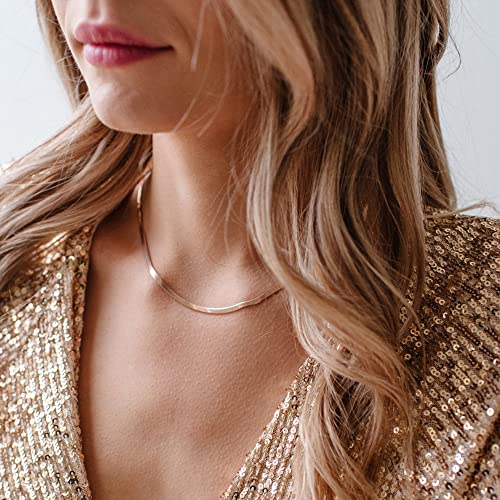 Tewiky - Tewiky Herringbone Necklace for Women Dainty 14k Gold Snake Chain Necklace Layered Gold Herringbone Double Flat Snake Chain Choker Necklace Thin Chunky Chain Necklace Gift for Her