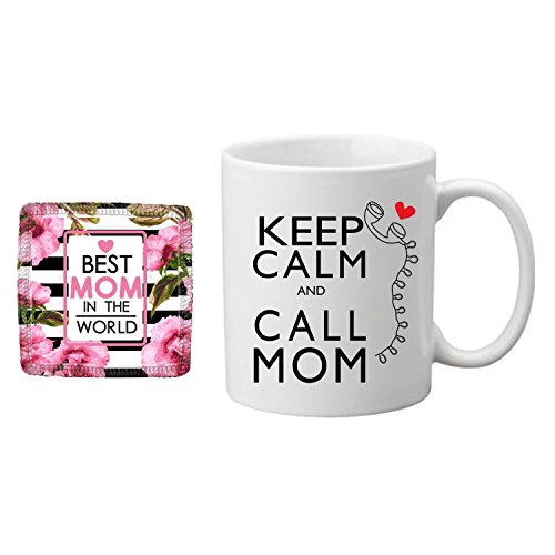 Generic - TheYaYaCafe Keep Calm and Call Mom Ceramic Coffee Mug 330ml, Coaster, White, Combo Set of 2