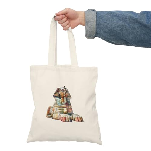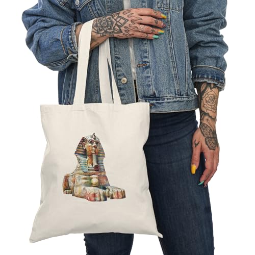 Generic - Tote Bag – شنطة قماش بسحاب بتصميم أبو الهول الفرعوني – شنطة توتي واسعة وخفيفة للتسوق اليومية – حقيبة عملية صديقة للبيئة وقابلة لإعادة الاستخدام – حقيبة قماش تراث مصري