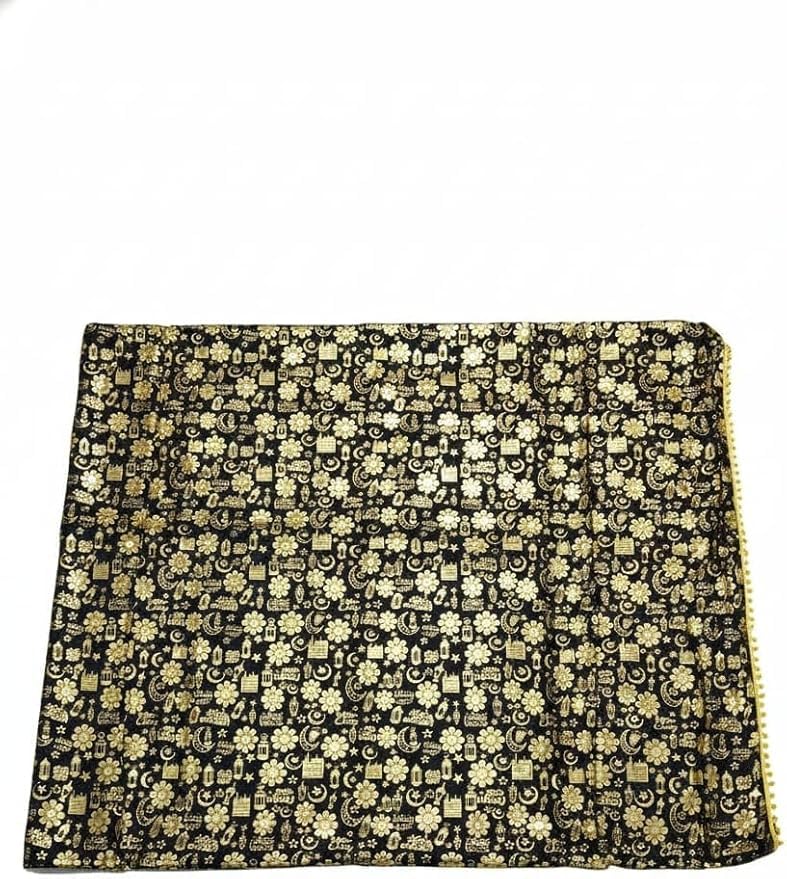 Generic - مفرش طاولة رمضان اسلامي تقليدي، مخملي مع خط عربي ذهبي، حواف مهدبة، 1.5 × 1.5 (سي)