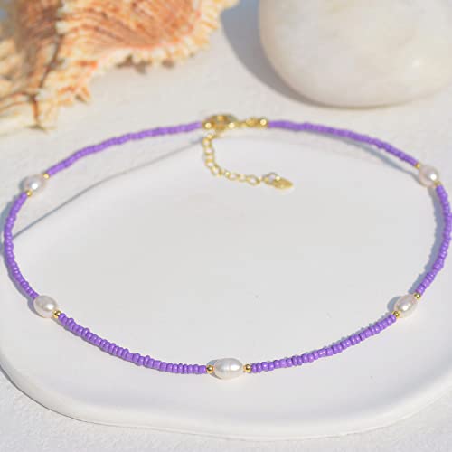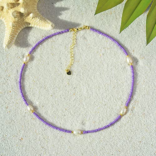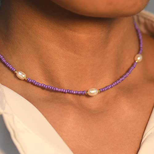 UMODE - UMODE Freshwater Pearl Beaded Choker Necklaces for Women, Handmade Cute Y2K Pearl Necklace for Teen Girls, Colorful VSCO Boho Hawaiian Summer Beach 18K Gold Plated Jewelry Gift, Glass, Pearl