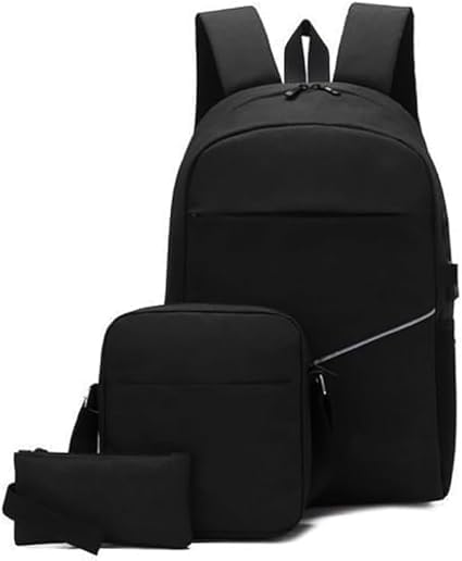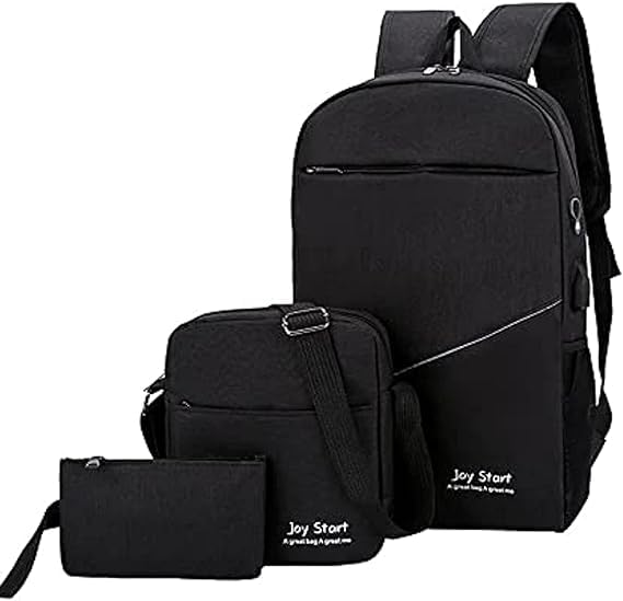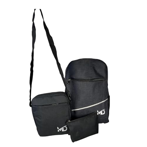 M D Stay Fit - طقم شنطة لاب توب من ثلاث قطع، شنطة ظهر مدرسية للكتب الجامعية وشنطة كتف للسفر للبنات والنساء بمنفذ USB للاولاد والرجال بسعة كبيرة من ام دي (اسود)