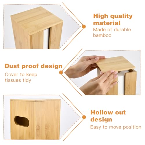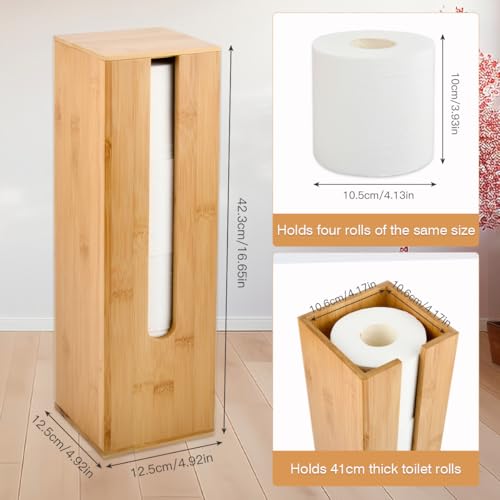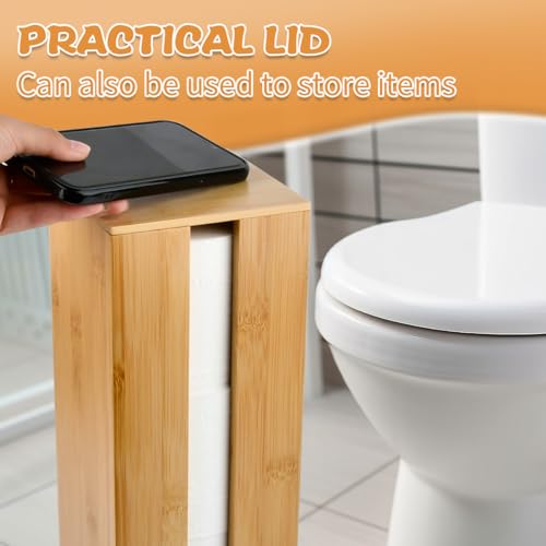 USENG - Bamboo Toilet Paper Holder for 4 Rolls with Lid, Toilet Paper Storage, Wooden Toilet Paper Holder, Standing Toilet Roll Holder, Toilet Paper Replacement Roll Holder, Toilet Cabinet for Small