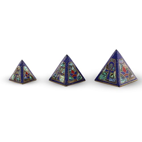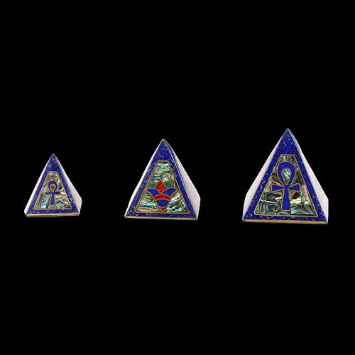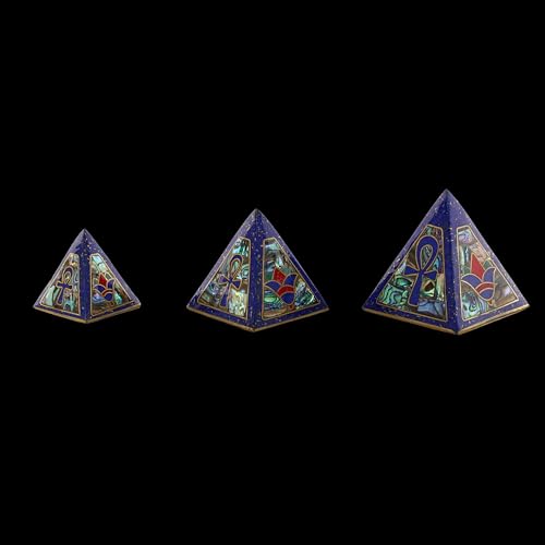 generic - Vintage pyramids of Egypt Set of 3 Pyramid- Egyptian Pyramids- Giza pyramids-EGYPTIAN Home Decor - heavy stone inlaid with jemstones lapis lazuli,mother of pearl,coral and brass Made in Egypt.
