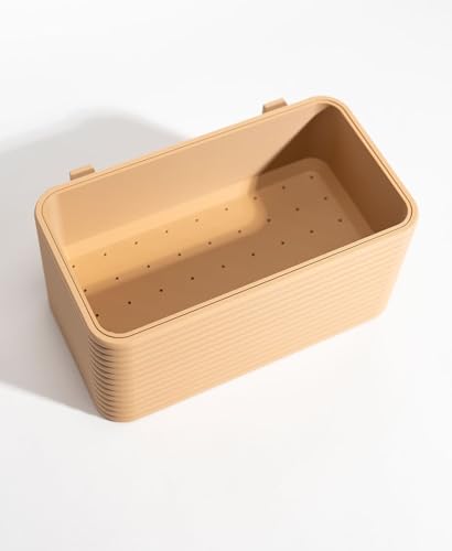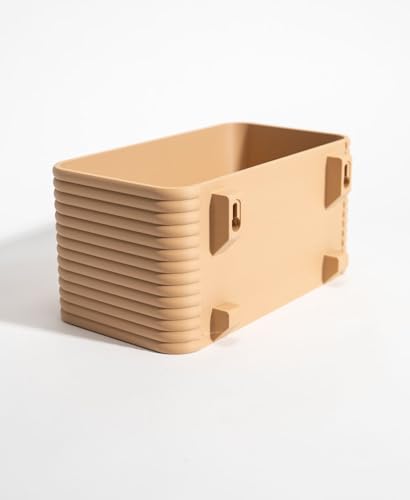 Generic - Wall Mounted Planter with Removable Inner Pot and Hidden Drip Tray, Beige Ribbed Design, Rectangular Shape