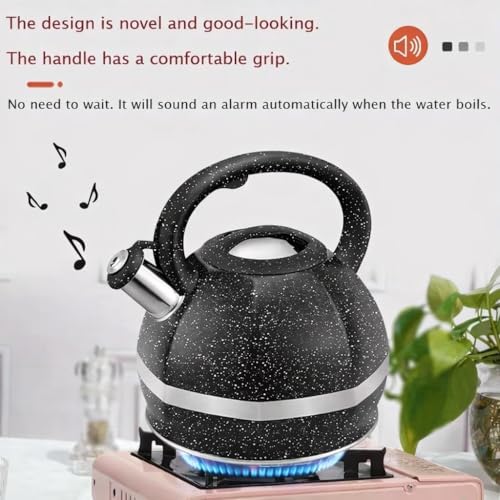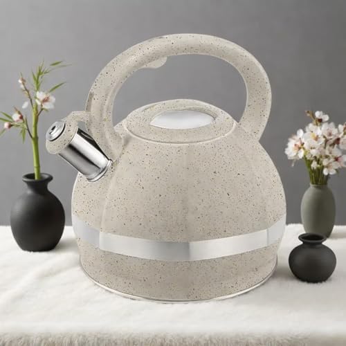 Generic - غلاية صفير مصنوعة من الستانلس ستيل ومرقط رخامي، متوافقة مع موقد الغاز والحث (بيج)