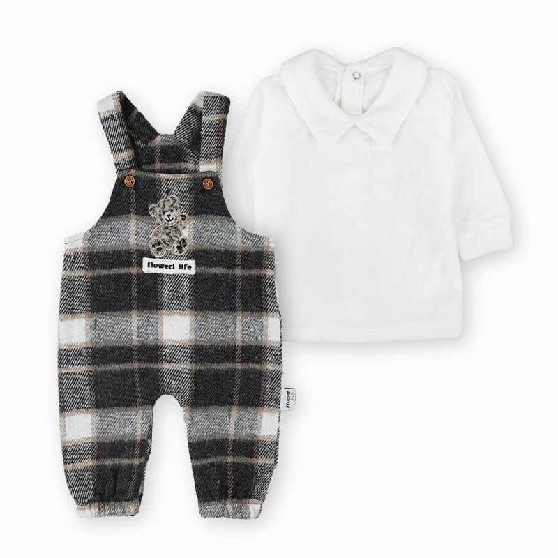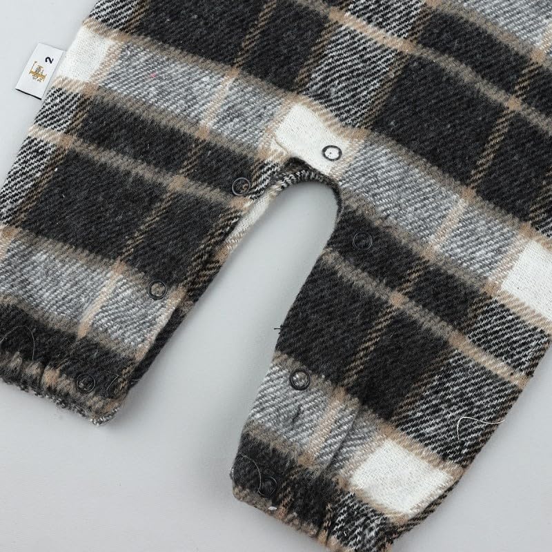 Generic - Winter Two-Piece Jumpsuit in Brown Checkered Pattern, Size 9-12 months