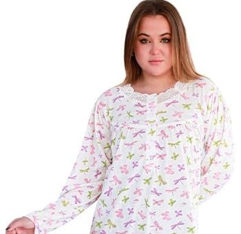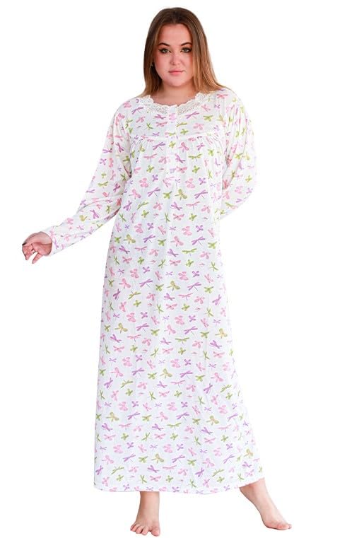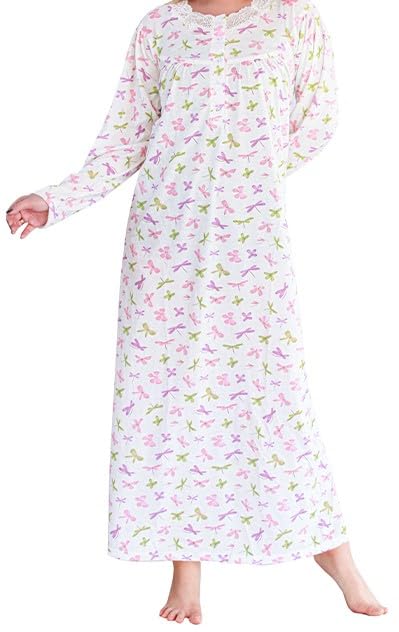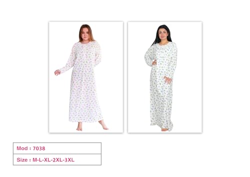 Dadoush - قميص نوم حريمي طويل بأكمام طويلة، بوليستر وقطن، بنقشة زهور وردي وأخضر