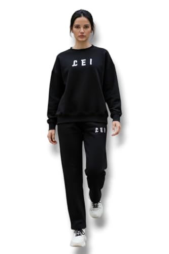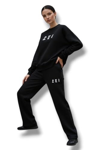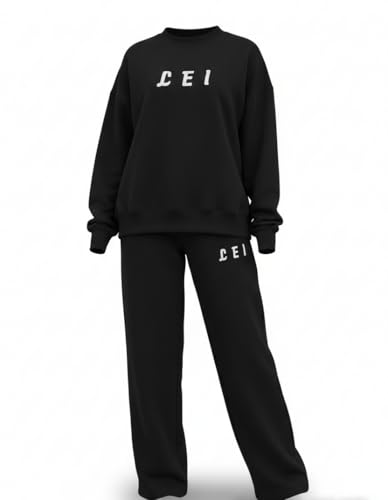 Generic - طقم رياضي نسائي شيك وعصري، تصميم مريح يناسب اللبس اليومي والخروجات السريعة، أسود، مقاس موحد، يشمل بلوفر وبنطلون