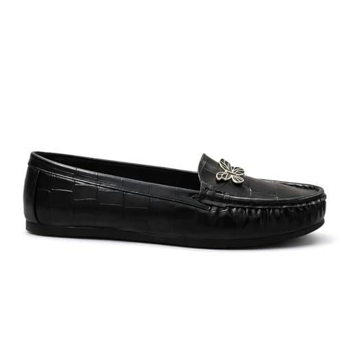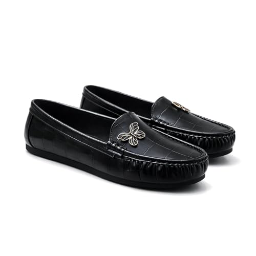 Generic - Women's Fashion Loafer – Luxury Leather with Fashion Pattern with Signature Accessory – Comfortable and Light for Everyday Use (Black, 39)