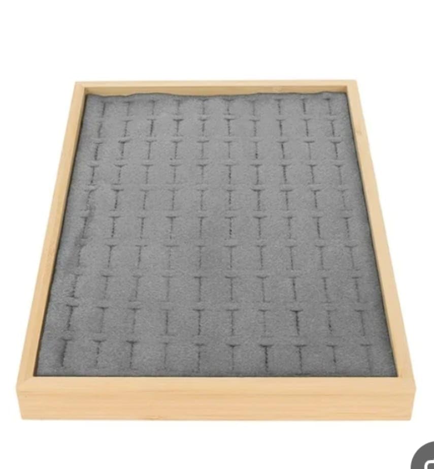 Generic - Wooden Jewelry Display Tray with Velvet Liner, Natural Wooden Frame, Dark Green, 35 x 24 x 3 cm Width 100 Rings (Grey)