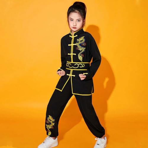 YEMYIQZ - Kung Fu Uniform for Boys Girls Kids Traditional Chinese Embroidered Tai Chi Wing Chun Master Martial Arts Set Outfit