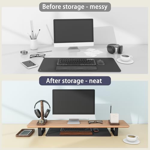 - Multi-functional Storage Design: This wood monitor stand for desk can serve not only as a support for monitors, printers, and laptops but also as a television stand or vanity. It features a storage space of 39.4*9.1*4.3inches underneath, convenient for storing keyboards, mice, gaming devices, files, etc., effectively keeping your desk tidy.