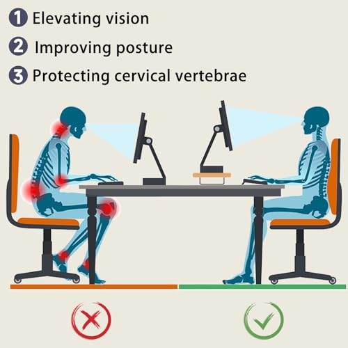 - Ergonomic Enhancement: Designed according to ergonomic principles, this computer monitor stand for desk allows you to raise your screen to eye level, reducing neck, shoulder, and back strain. Enhance work efficiency and avoid physical discomfort from prolonged working hours, providing an optimal choice for workplaces.