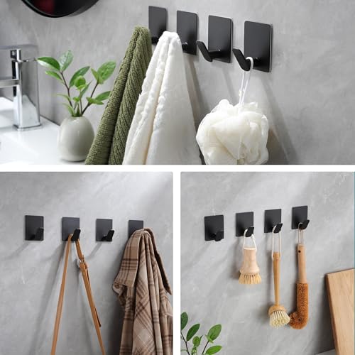 - 【Waterproof & Durable】Made of stainless steel, these self-adhesive hooks stay put even in humid bathrooms. Perfect for hanging towels, robes, kitchen tools, and cloths