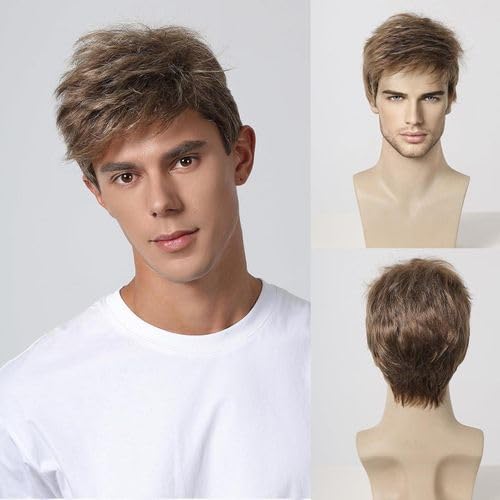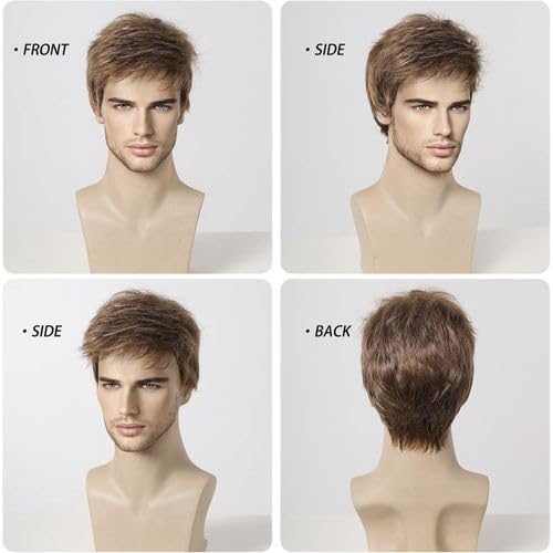 Generic - باروكه شعر مستعار قصيرة باللون البنى ,تناسب الرجال , مصنوعة من الفايبر , اطلالات يومية , حل تساقط الشعر ,تغيير اللوك الخاص بك .