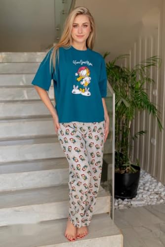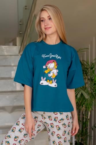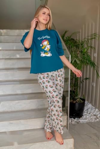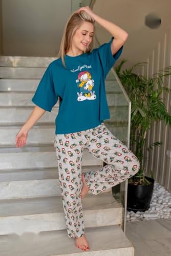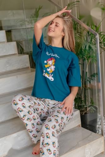Generic - بيجامة حريمى صيفى قطن قطعتين مكونة من تى شيرت نصف كم و بنطلون