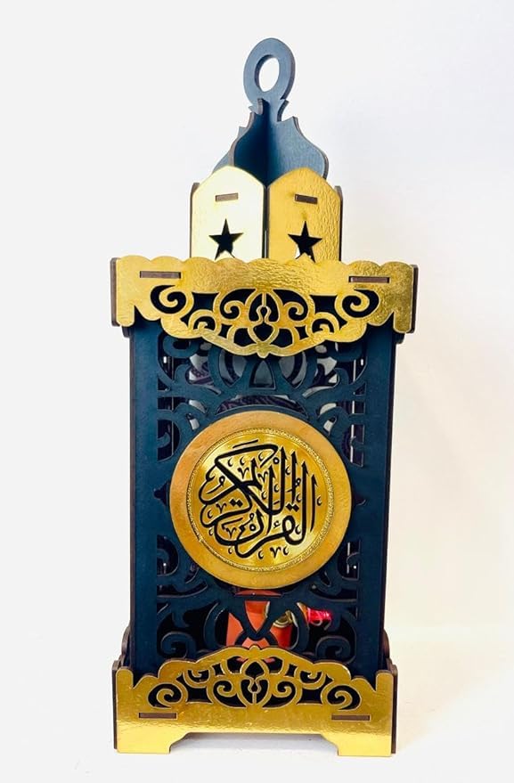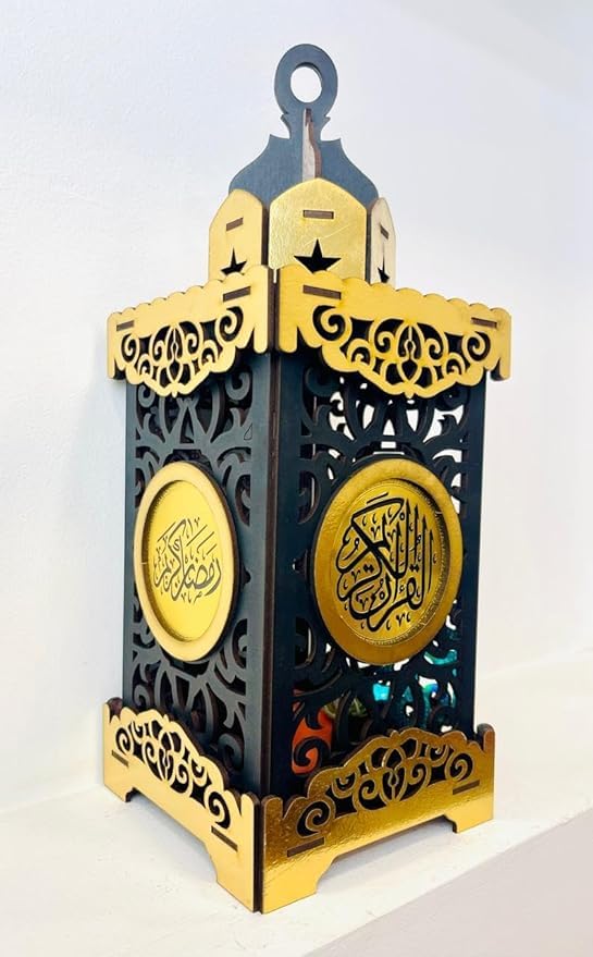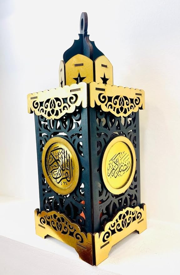 Generic - فانوس رمضان خشب فانوس رمضان خشب عليه مزخرفه اسلاميه مع حلقه تعليق اسود فى دهبى