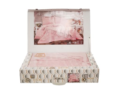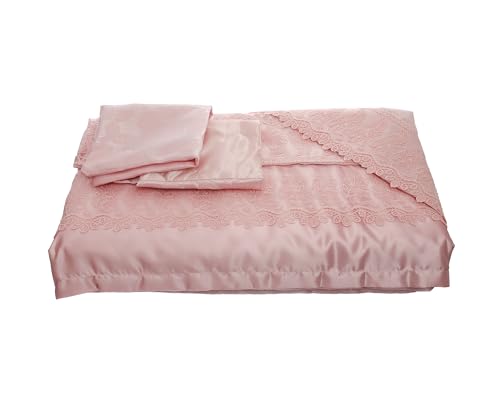 Egyptian Textile - طقم 1 كوفرته مقاس 240 × 260 + 2 خدادية مقاس 55 × 75 + 1 تربيعة مقاس 45 × 45 + 1 كانون 5 قطع سوفت فايبر معالج ، بودى روز - 18132